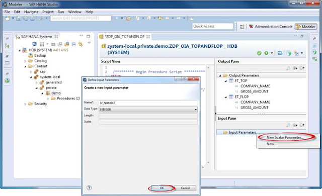 Step -1 Create and implement a SAP HANA Procedure with Input and Output Parameters